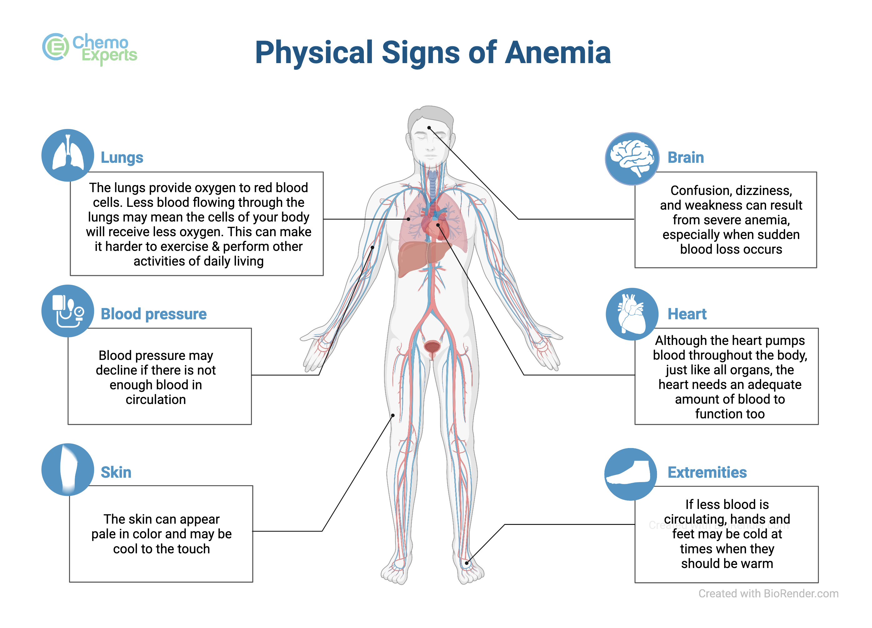 Onset: Anemia can occur over weeks to months as a result of low RBC production due to the bone marrow-suppressing effects of chemotherapy. Or, anemia can happen quickly (over hours or days) resultng from RBC loss due to medications that increases the risk of bleeding.